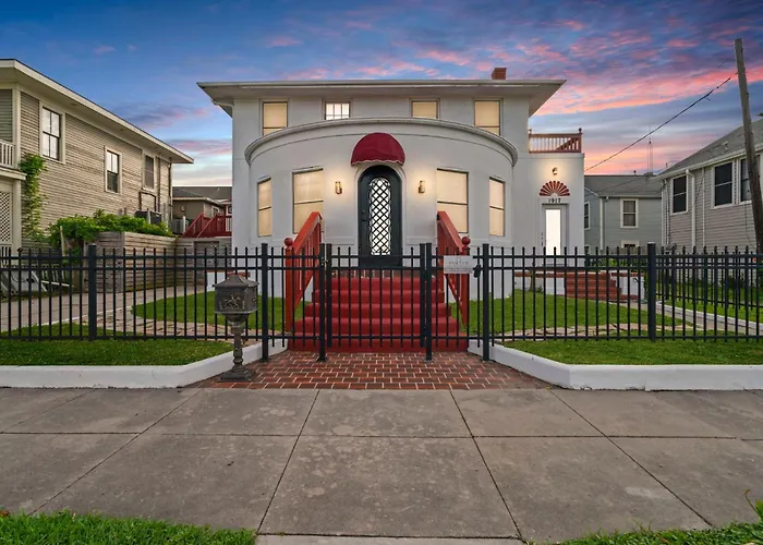 **Welcome to Sinatra House Up Walk To Pleasure Pier And Fun**, a charming villa situated in the vibrant East End of Galveston. This culturally diverse neighborhood is celebrated for its lively arts scene, featuring indie galleries and striking murals that reflect the local creative spirit. Just a leisurely stroll from the Pleasure Pier, guests can immerse themselves in the infectious energy of Latino music and dance, particularly at the renowned Talento Bilingue de Houston arts center.